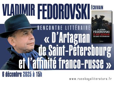 15h00 Vladimir FEDOROVSKI. « D'Artagnan de Saint-Petersbourg et l’affinité franco- russe ». Rencontre littéraire.