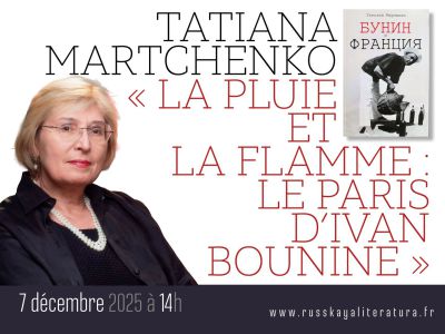 « La pluie et la flamme : le Paris d’Ivan Bounine » , conference donné par Tatiana MARTCHENKO, docteur ès lettres,directrice du département de la Culture russe à l'étranger de la Maison de l'emigration russe A. Soljenitsyne.