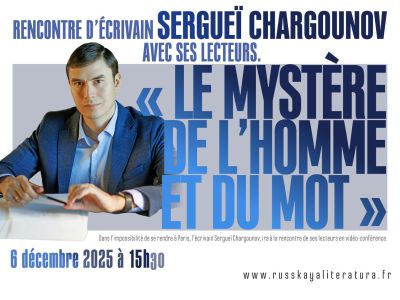 18h30 "Le mystère de l'homme et du mot". Rencontre de l'ecrivain Sergueï CHARGOUNOV avec ses lecteurs.